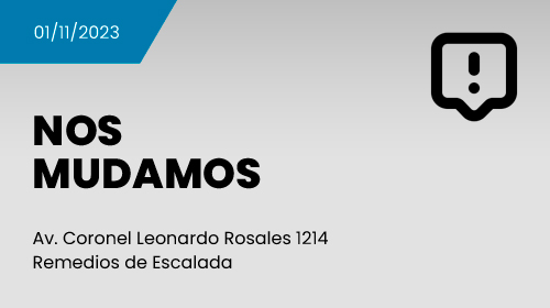 A partir del 1 de Noviembre de 2023 nuestra nueva dirección es Av. Cnel. Leonardo Rosales 1214, Remedios de Escalada.